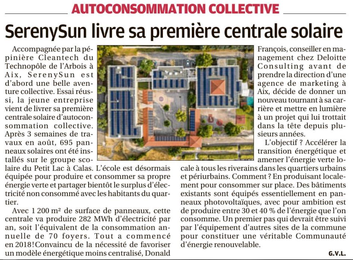 Merci à La Provence de mettre en lumière la première centrale solaire du projet d’autoconsommation collective de Cabriès-Calas !